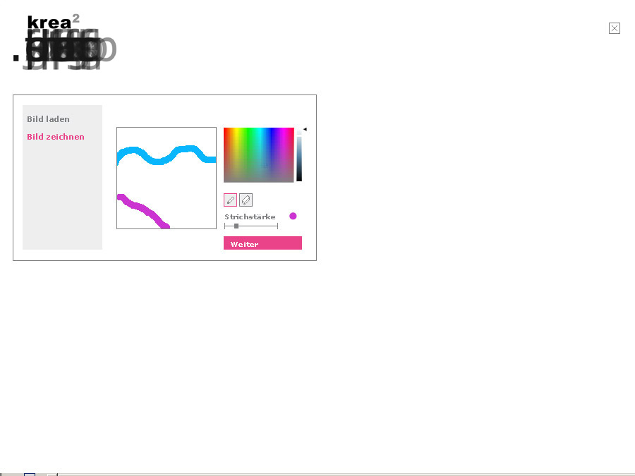 Ziel des Projekt besteht darin, die User der Plattform "krea2" kognitiv zu entlasten sowie eine intuitive Vorgehensweise zu ermöglichen. Entspricht ein Suchergebnis intuitiv den Vorstellungen des Users, so kann er es anklicken und das Auswahl-Bild wird in dem rechten Feld angezeigt. Die Positionierung des Auswahl-Bildes soll dem User einen genaueren Vergleich mit dem hochgeladenen bzw. gezeichneten Bild ermöglichen. Durch die Auswahl eines Bildes aus dem Suchergebnis wird das Suchergebnis entprechend dem ausgewählten Bild verfeinert. Der User "zoomt" sich immer tiefer in detaillierte Suchergebnis, ähnlich der "Kohnen-Maps". Der User hat in diesem Stadium drei Möglichkeiten: Er kann das ausgewählte Bild "downloaden", er kann ein neues Bild in der verfeinerten Suche auswählen oder er kann sich das vorherige Suchergebnis nochmals anzeigen lassen.